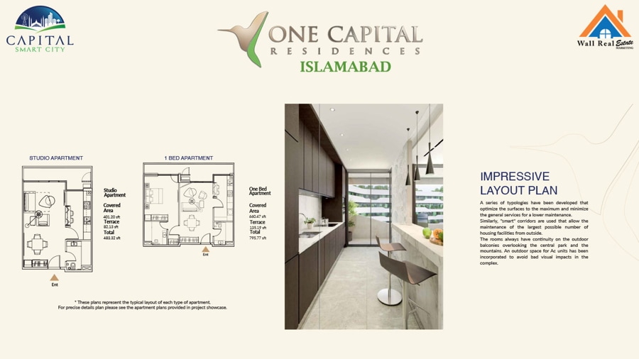 You can buy well-designed, spacious, and premium apartments in Capital Smart City Islamabad, which is the first ever smart project in Pakistan. Here, you can buy multiple size properties at competitive rates to own a lifestyle you always crave for. Capital One Residences is offering the following types of apartments!